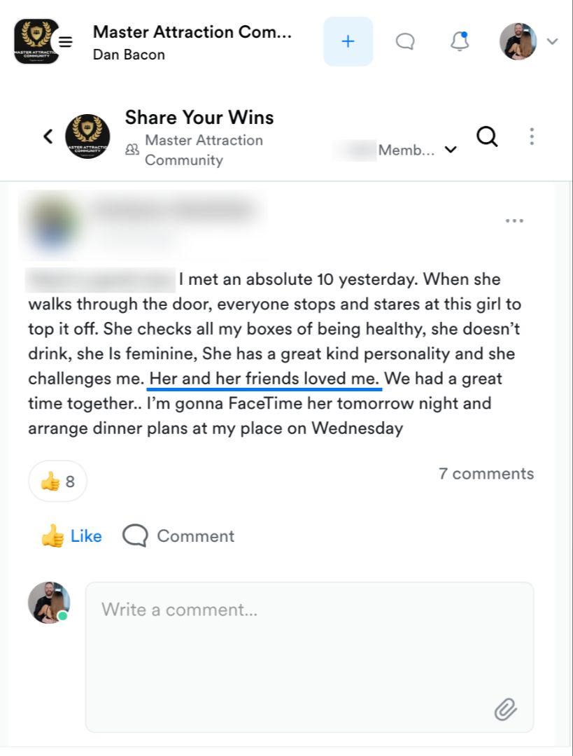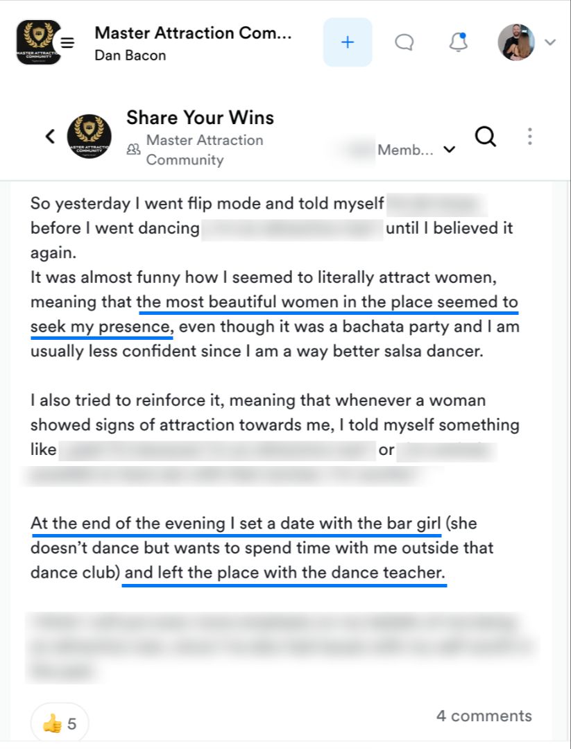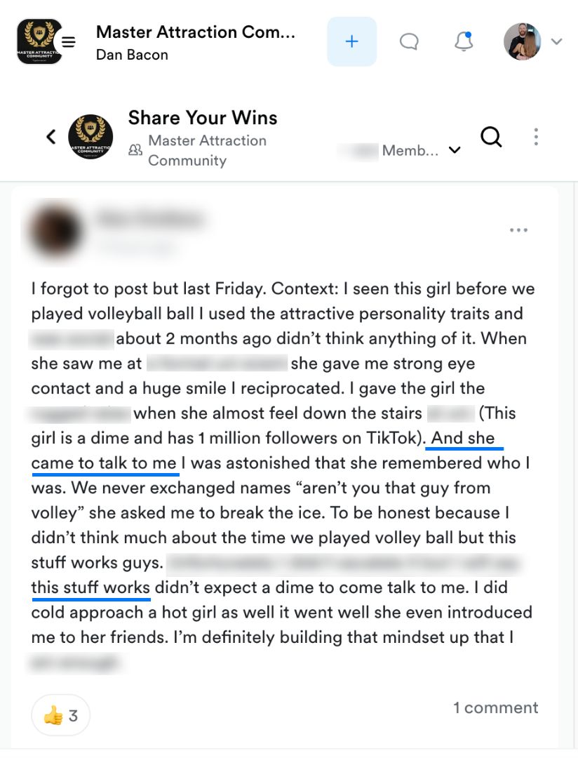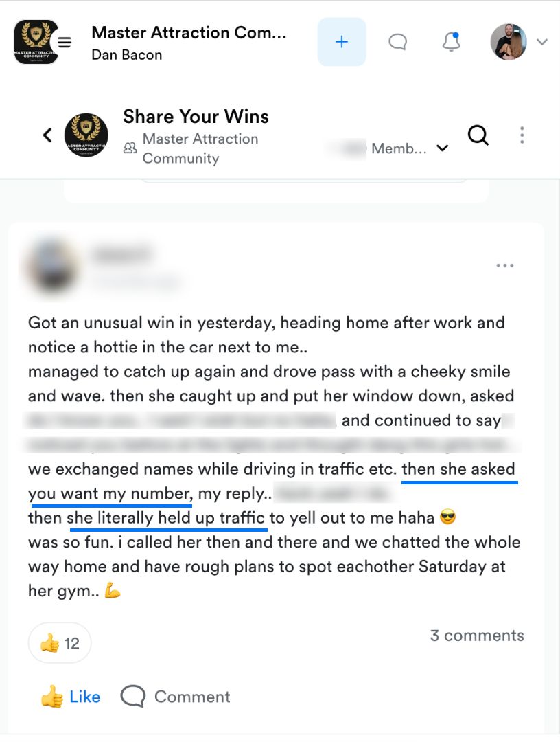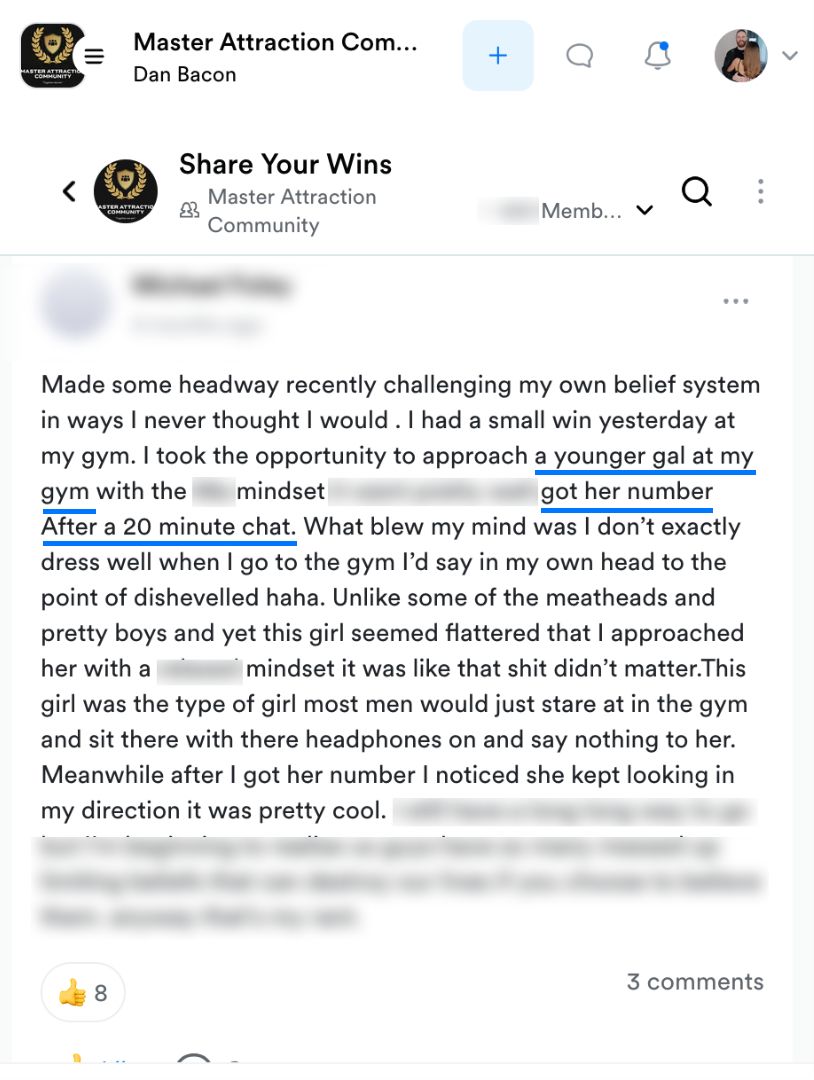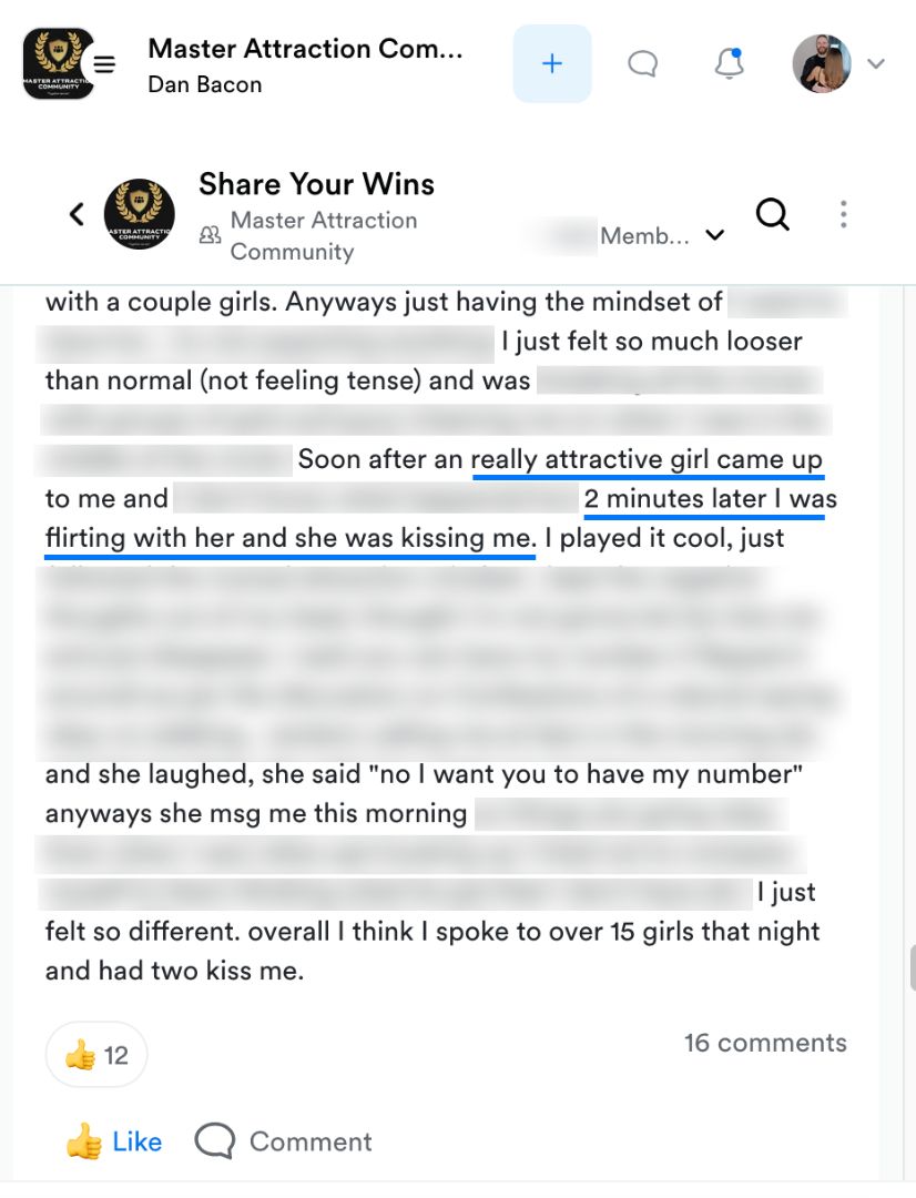 Below are screenshots from our Master Attraction Community and are only SOME of the success stories being posted in there.