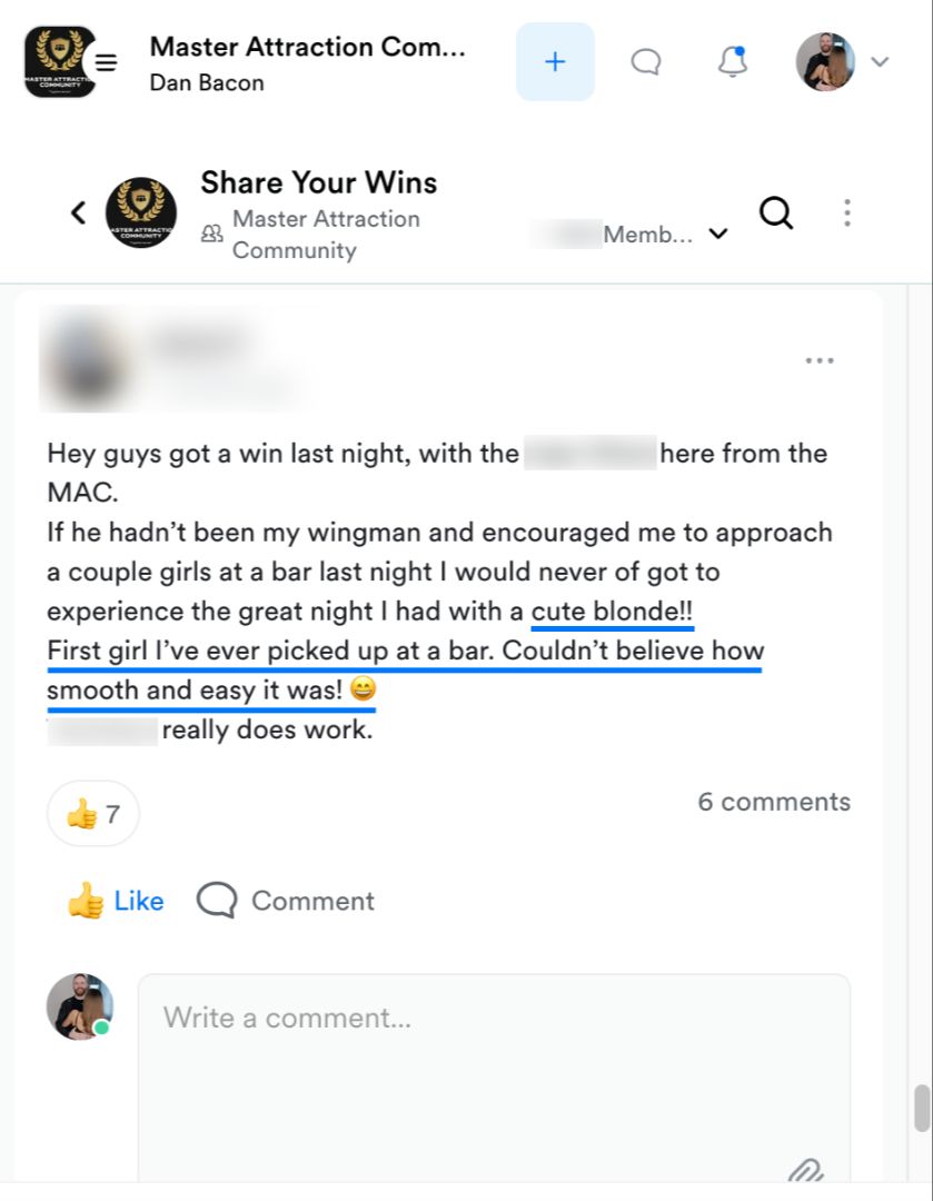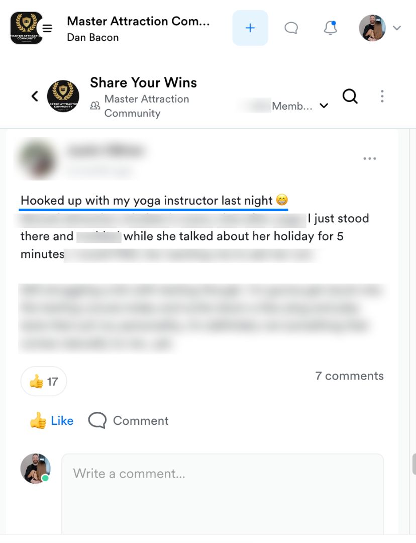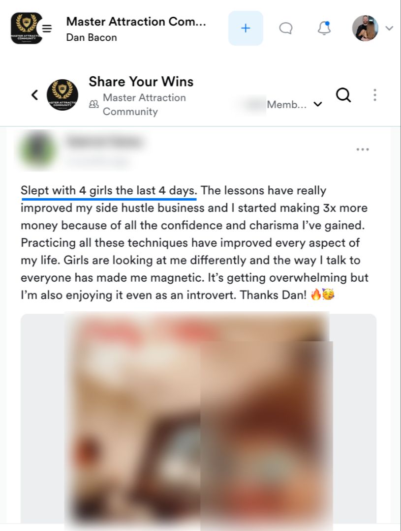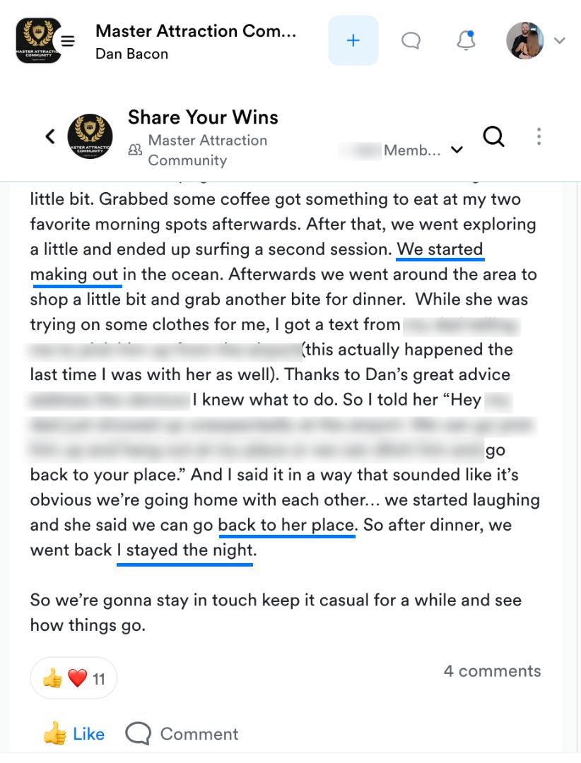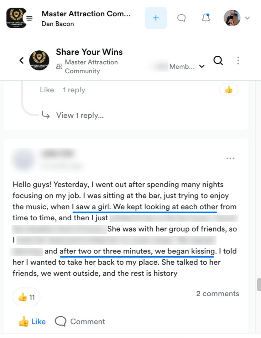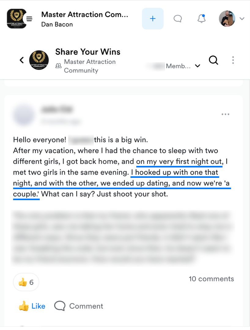 Below are screenshots from our Master Attraction Community and are only SOME of the success stories being posted in there.