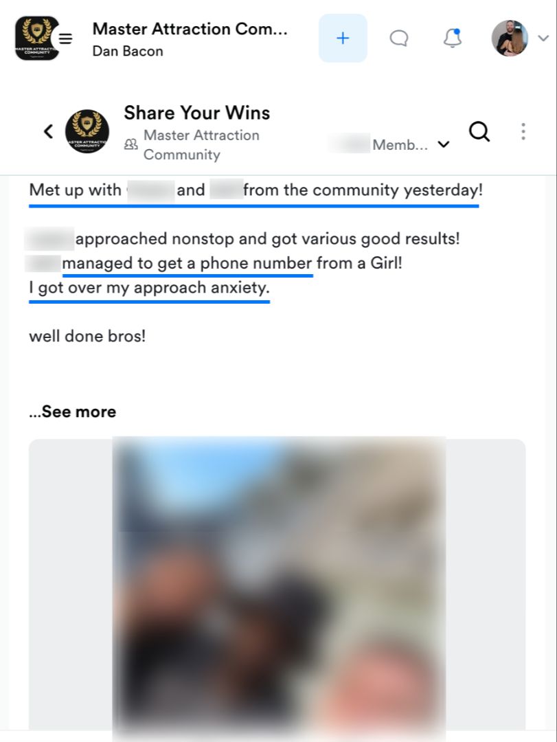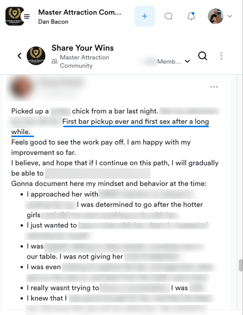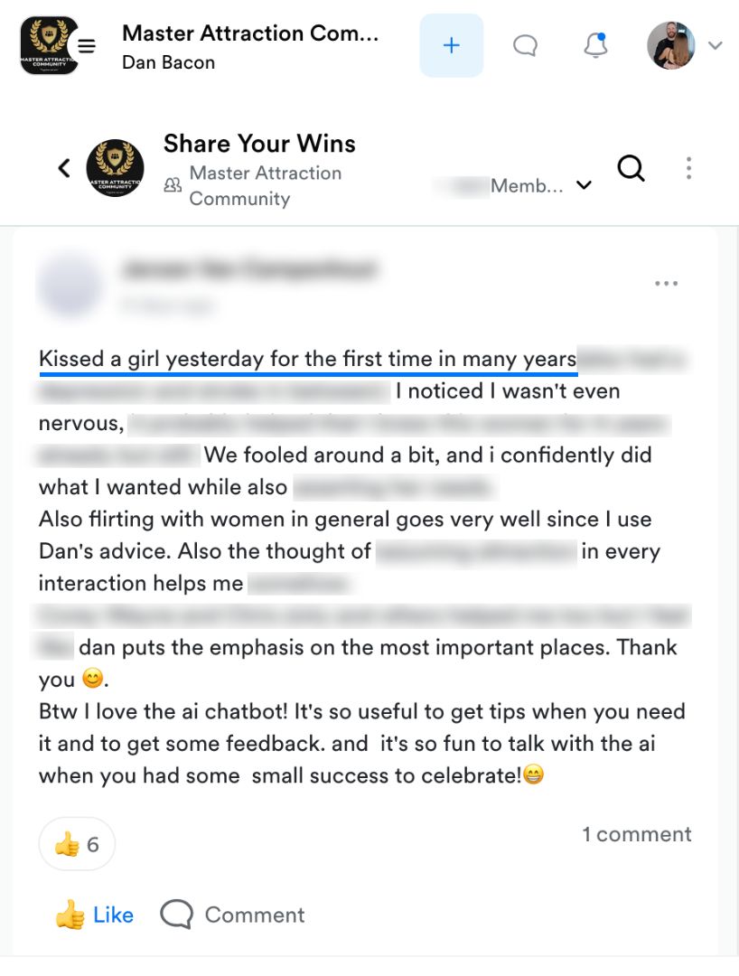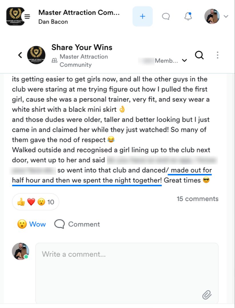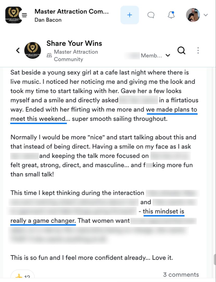 Below are screenshots from our Master Attraction Community and are only SOME of the success stories being posted in there.