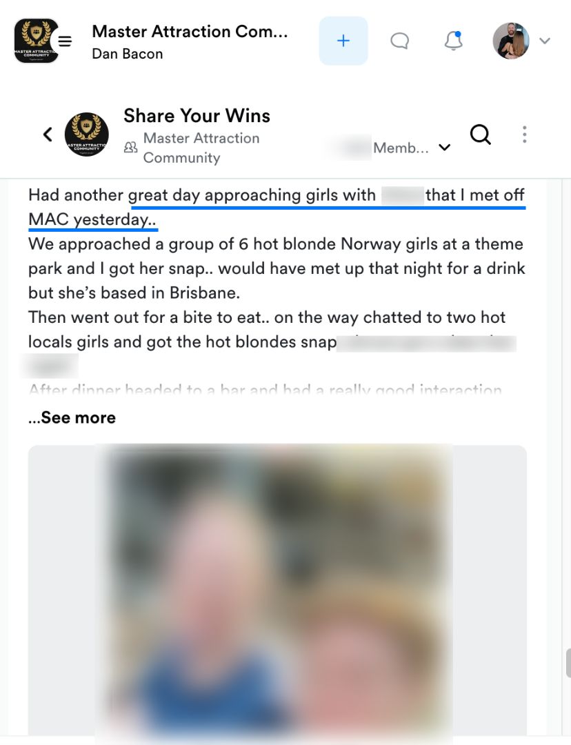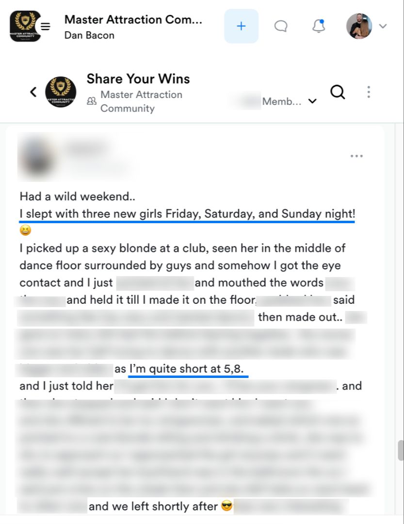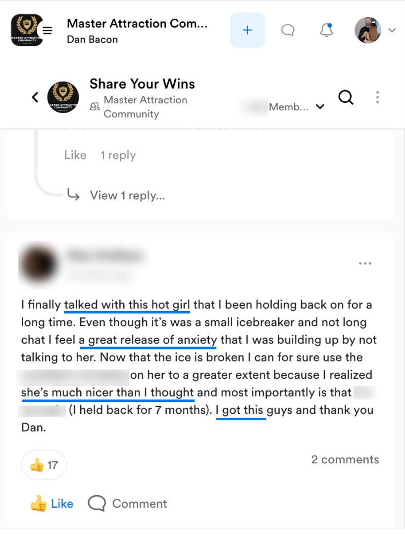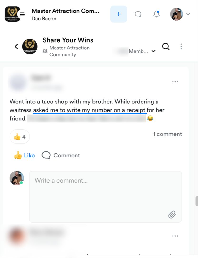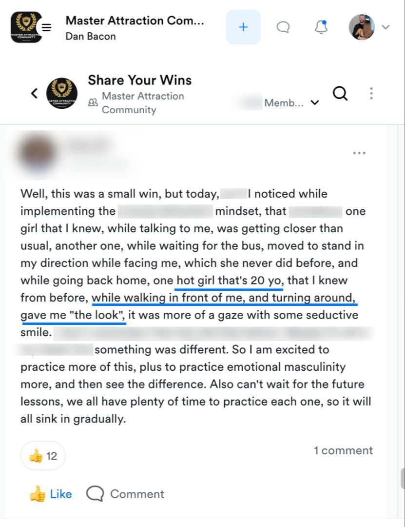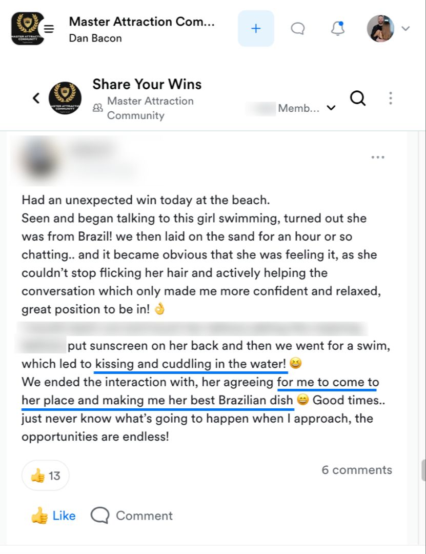 Below are screenshots from our Master Attraction Community and are only SOME of the success stories being posted in there.