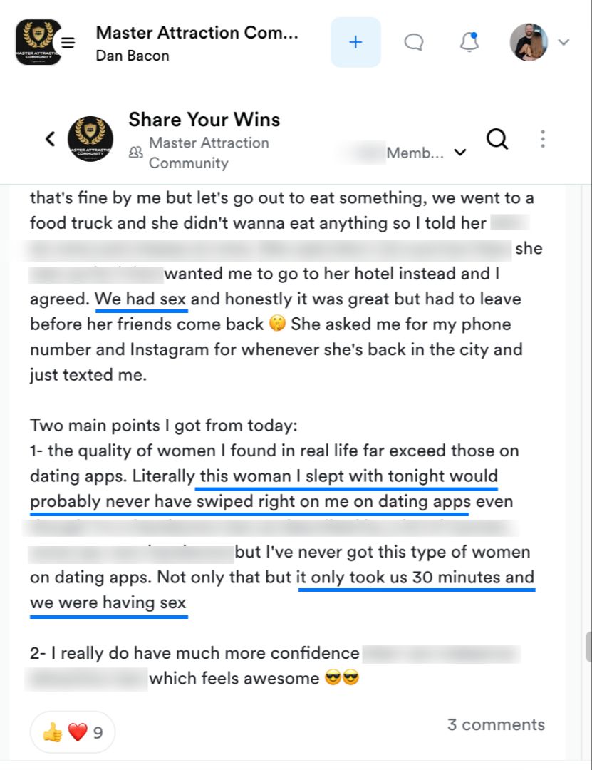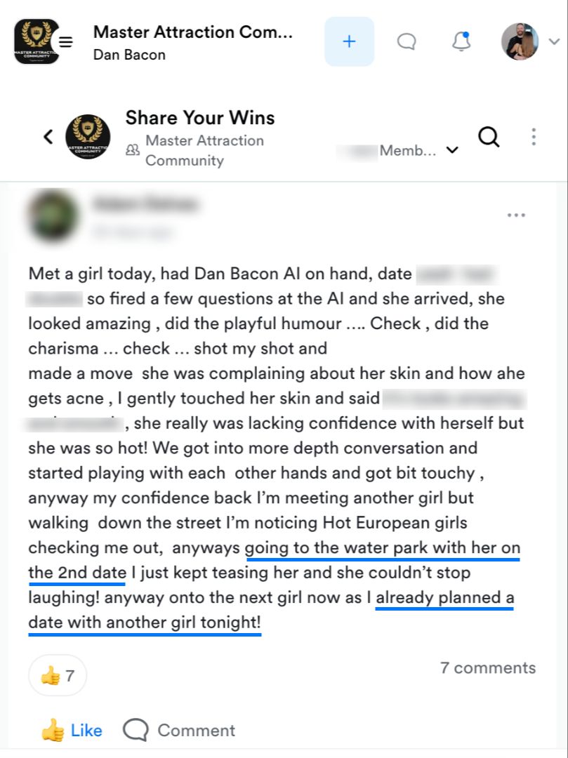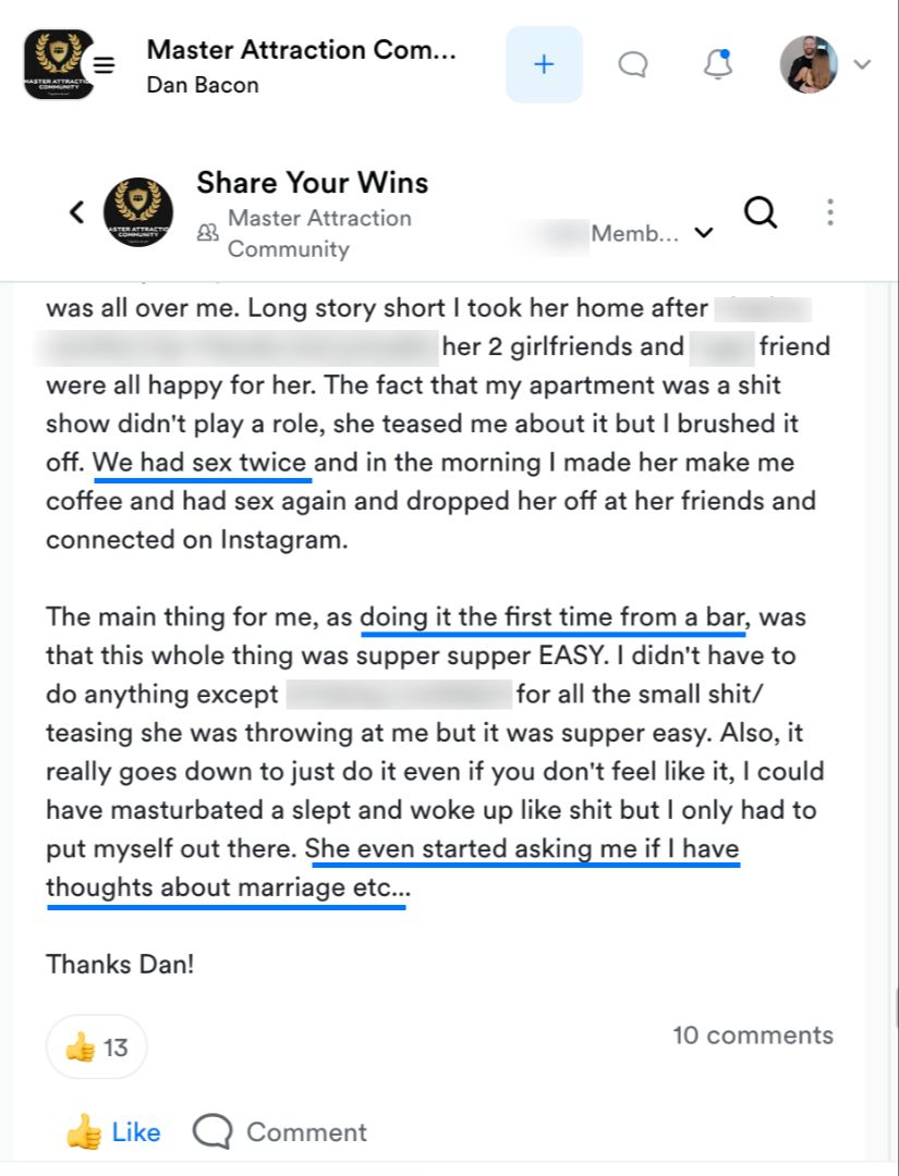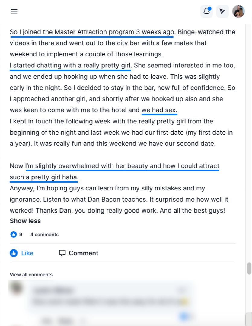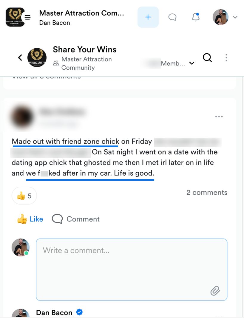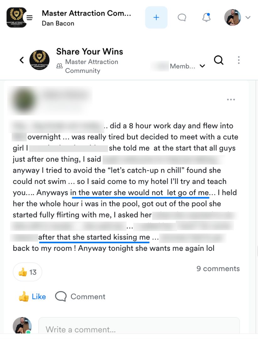 Below are screenshots from our Master Attraction Community and are only SOME of the success stories being posted in there.