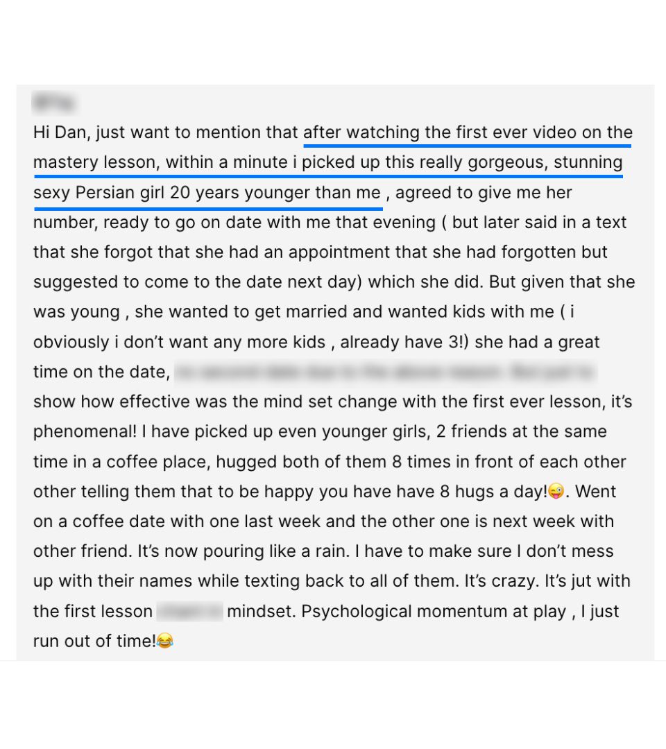 Members from across the world are using my attraction techniques to date, have sex with and get into relationships with women who were previously out of their league.